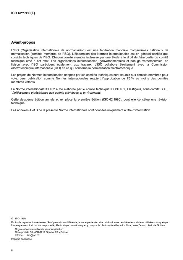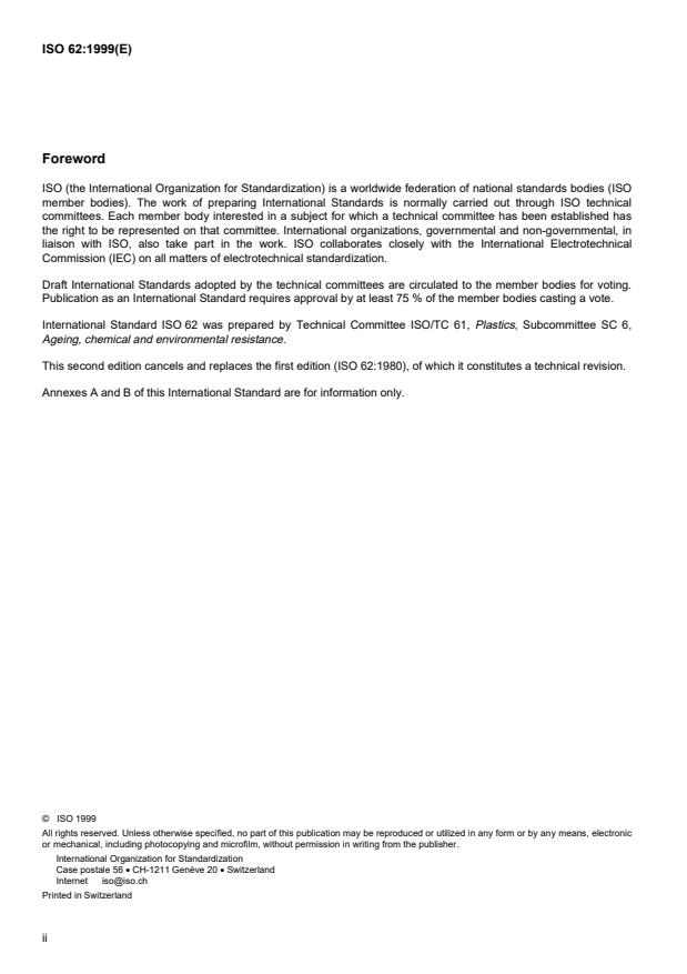 International Standard ISO 62 was prepared by Technical Committee ISO/TC 61, Plastics, Subcommittee SC 6,