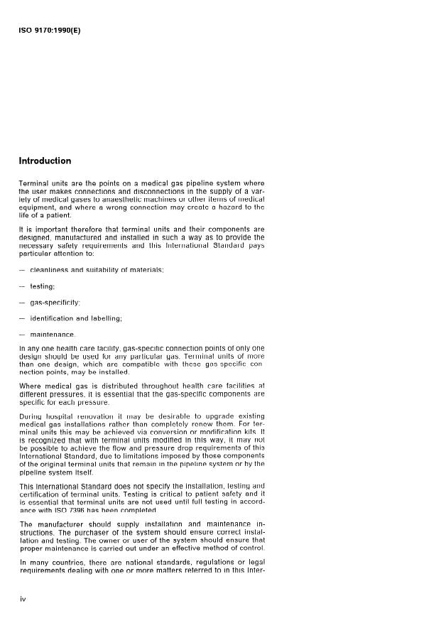 ISO 9170:1990 is a standard published by the International Organization for Standardization (ISO). Its full title is "Terminal units for use in medical gas pipeline systems". This standard covers: Terminal units for use in medical gas pipeline systems
