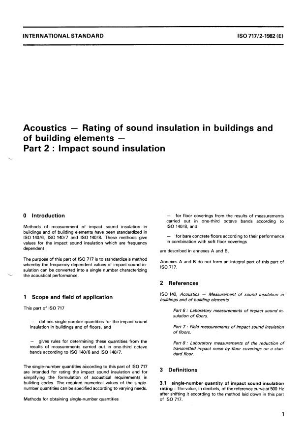 ISO 717-2:1982 - Acoustics -- Rating of sound insulation in buildings and of building elements