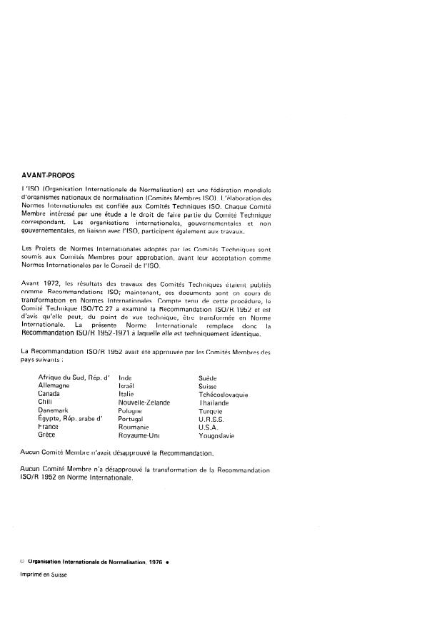 La Recommandation ISO/R 1952 avait été approuvée par les Comités Membres des
