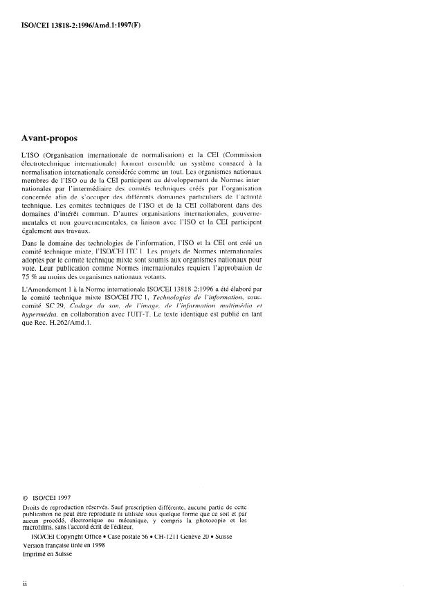 ISOKEI 13818-2:1996/Amd.l:1997(F)