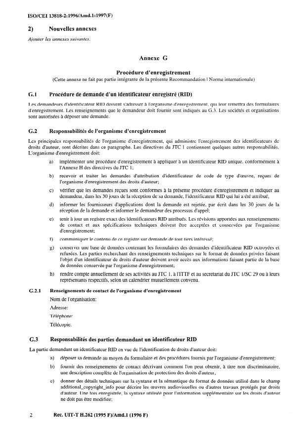 conformement a 1 ’Annexe H des directives du JTC 1. L ’identificateur de droits d ’auteur enregistre sera design6 ci-dessous