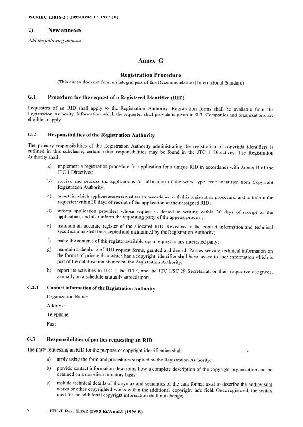 registering copyright identifiers in ITU-T Rec. H.262 1 ISO/IEC 138 18-2.