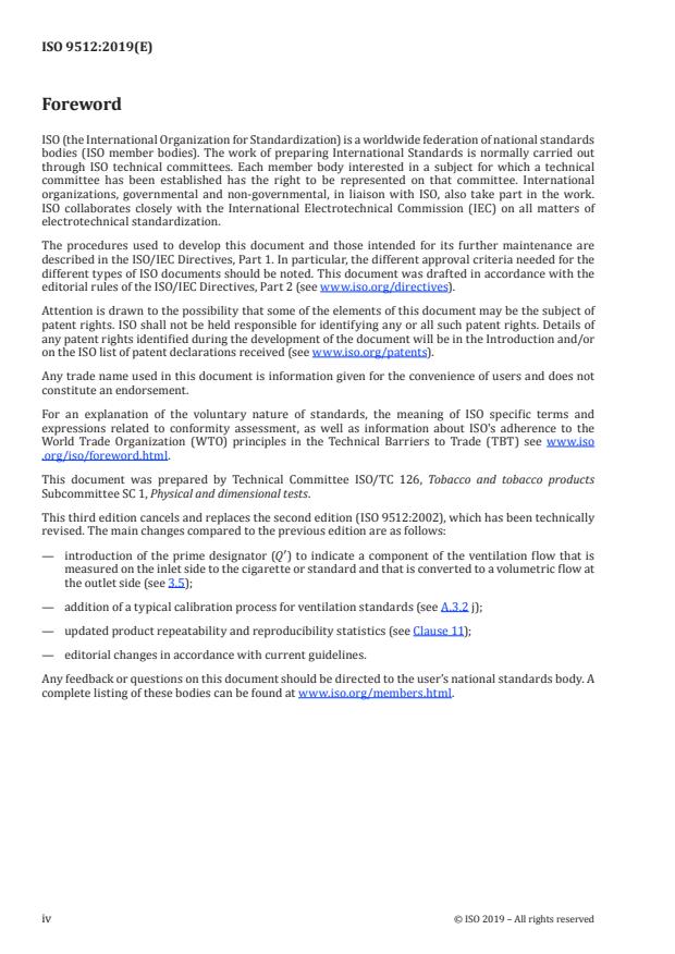 ISO 9512:2019 is a standard published by the International Organization for Standardization (ISO). Its full title is "Cigarettes — Determination of ventilation — Definitions and measurement principles". This standard covers: This document specifies a method for the determination of ventilation which is applicable to cigarettes.