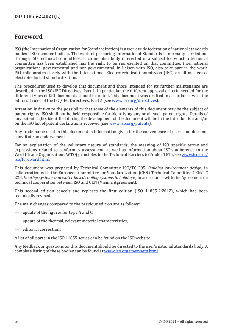 Keywords: ISO 11855-2:2021, embedded radiant heating and cooling systems, water-based surface heating, design heating and cooling capacity, finite element method, finite difference method, simplified calculation methods, heat flux, surface temperature, nominal medium differential temperature.