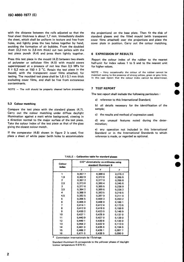 ISO 4660:1977 is a standard published by the International Organization for Standardization (ISO). Its full title is "Rubber, raw natural — Colour index test". This standard covers: Rubber, raw natural — Colour index test