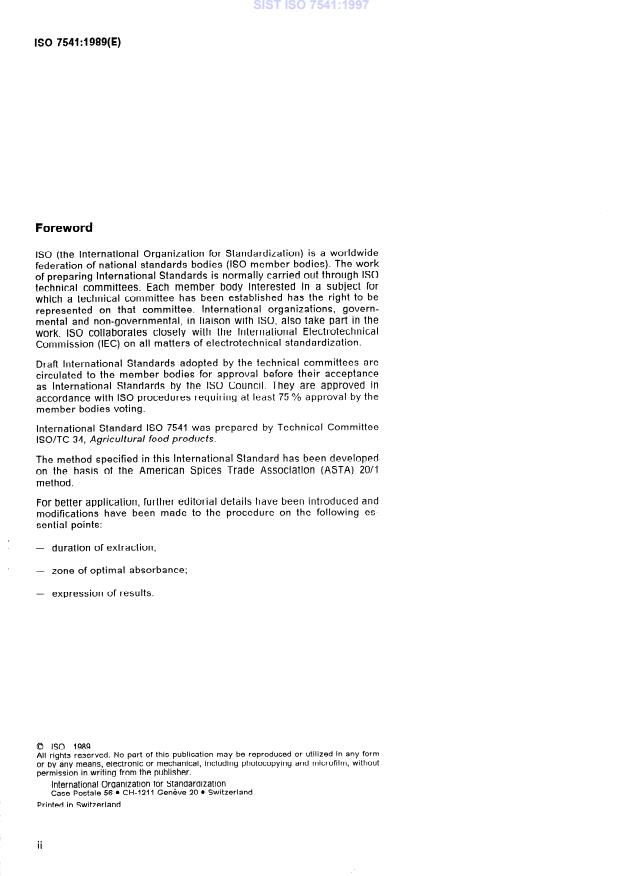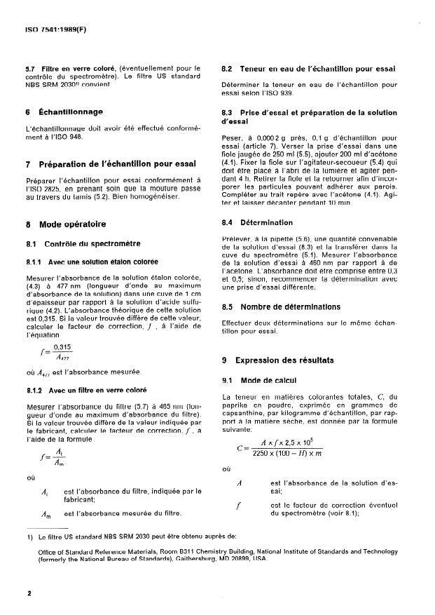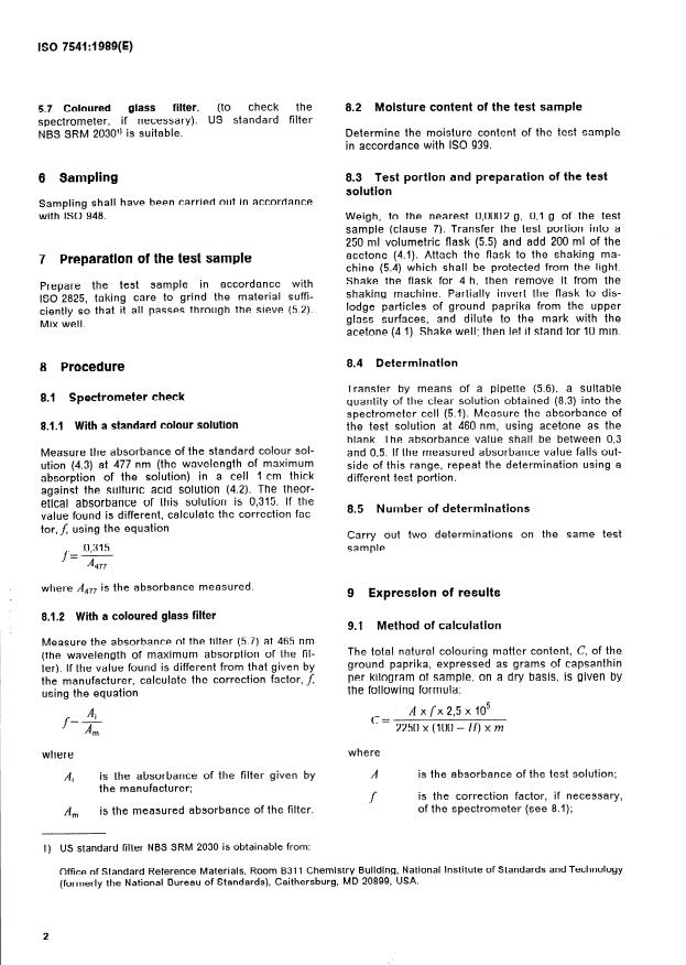 ISO 7541:1989 - Ground (powdered) paprika -- Determination of total natural colouring matter content