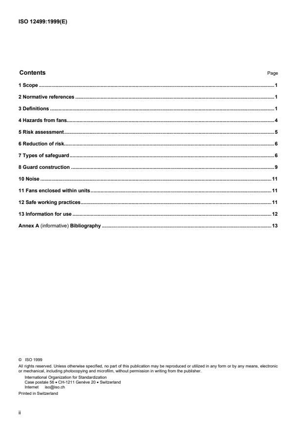 ISO 12499:1999 - Industrial fans -- Mechanical safety of fans -- Guarding