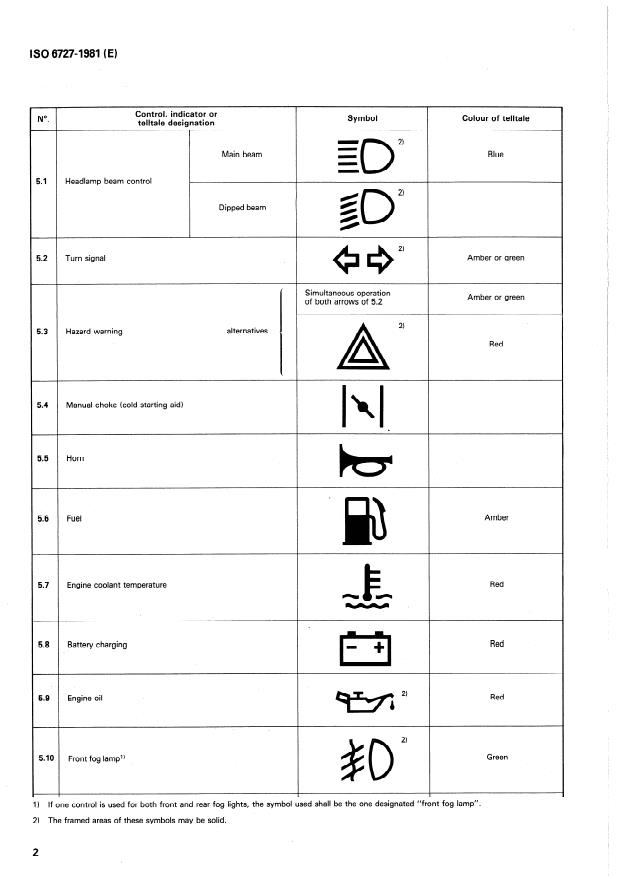 ISO 6727:1981 - Road vehicles -- Motorcycles -- Symbols for controls, indicators and telltales