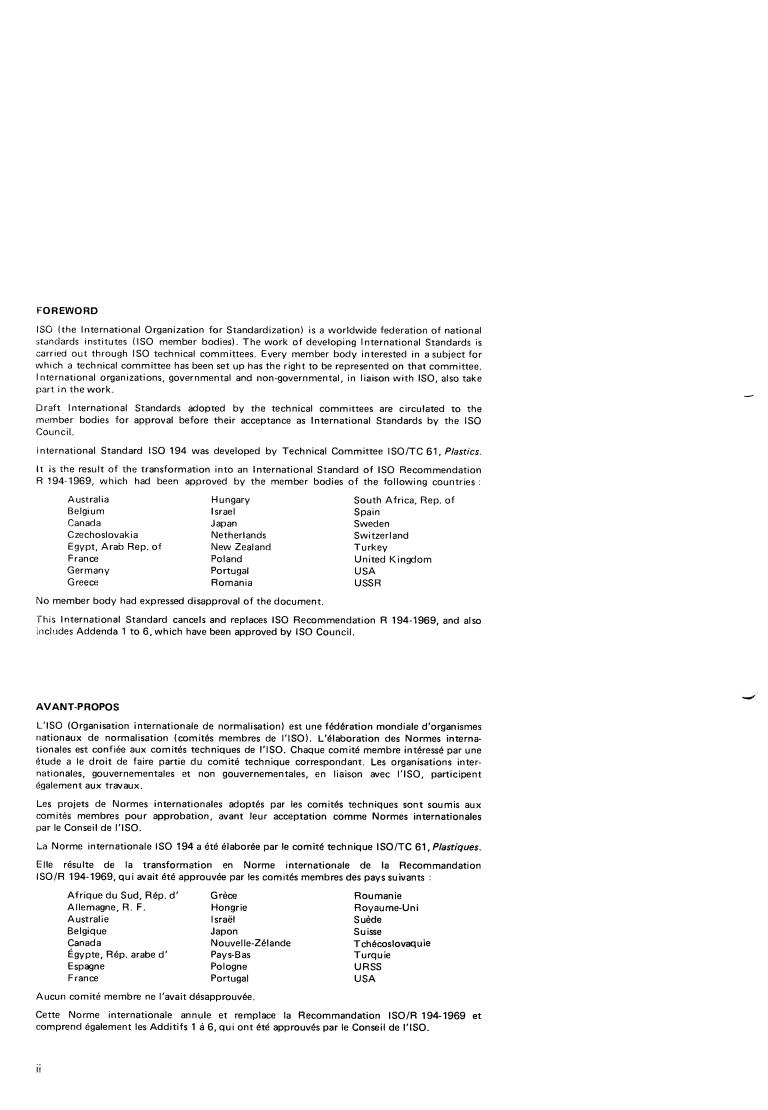 La Norme internationale IS0 194 a été élaborée par le cornit6 technique ISO/TC 61, Plastiques.