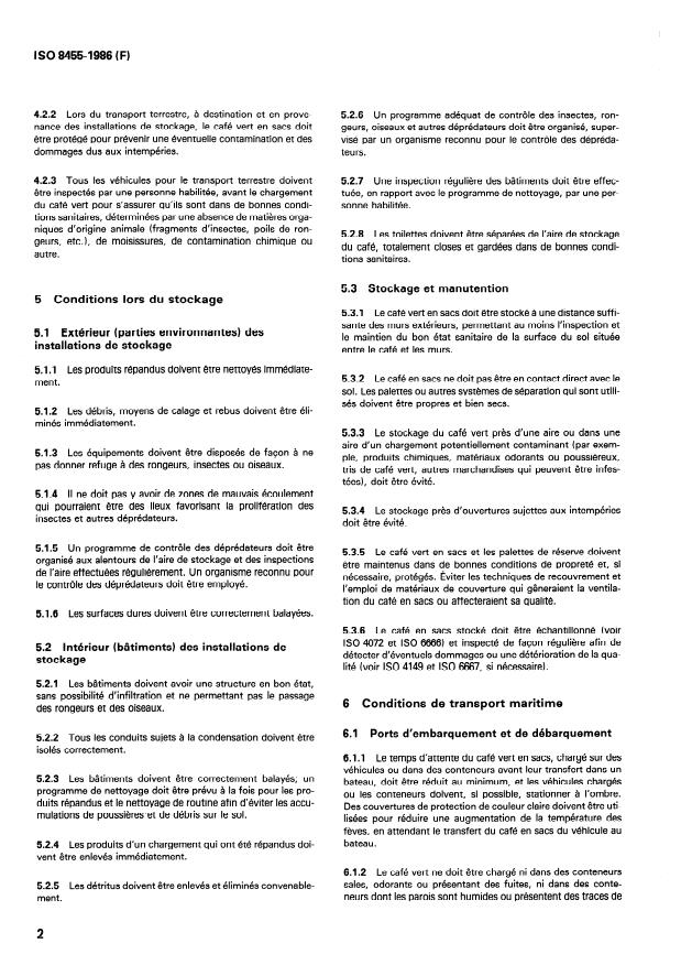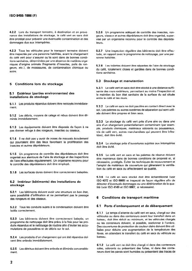 ISO 4672, Café vert en sacs - Échantillonnage. toute la durée du stockage.