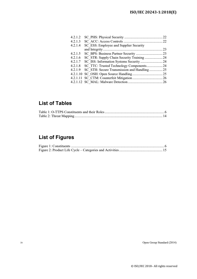 ISO/IEC 20243-1:2018 (O-TTPS) is a set of guidelines, requirements, and recommendations that address specific threats to the integrity of hardware and software COTS ICT products throughout the product life cycle. This release of the Standard addresses threats related to maliciously tainted and counterfeit products. The provider's product life cycle includes the work it does designing and developing products, as well as the supply chain aspects of that life cycle, collectively extending through the following phases: design, sourcing, build, fulfillment, distribution, sustainment, and disposal. While this Standard cannot fully address threats that originate wholly outside any span of control of the provider ? for example, a counterfeiter producing a fake printed circuit board assembly that has no original linkage to the Original Equipment Manufacturer (OEM) ? the practices detailed in the Standard will provide some level of mitigation. An example of such a practice would be the use of security labeling techniques in legitimate products.