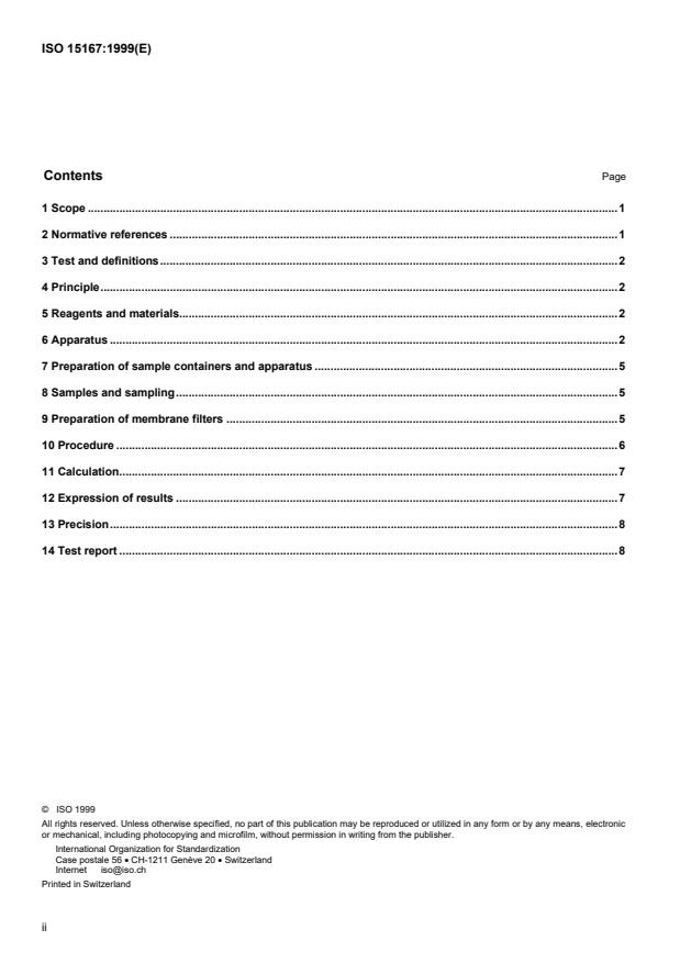 Overview - ISO 15167:1999 (Laboratory filtration method)