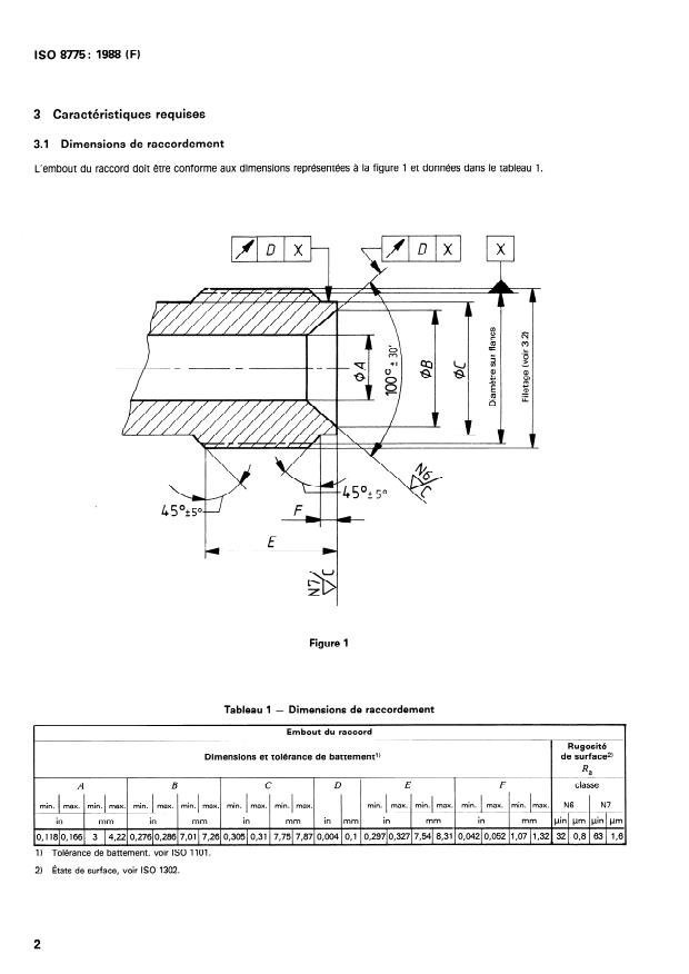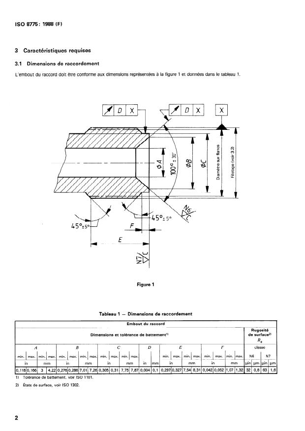 - Mating dimensions: The geometry of the coupling mating end is defined by the figures and tabulated dimensions (figure 1, table 1). Surface profile, run-out tolerances and roughness requirements are specified for the mating surfaces.