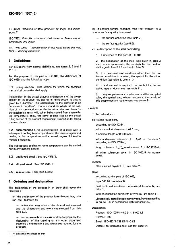 Scope and field of application 1.3 In addition to this part of IS0 683, the general technical