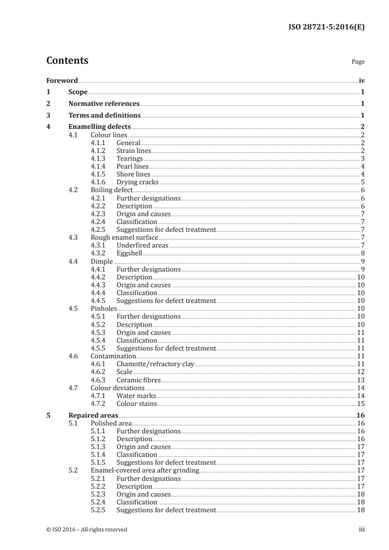 Keywords: ISO 28721-5:2016, glass-lined apparatus, vitreous enamels, porcelain enamels, enamelling defects, defect characterization, re-enamelling, strain lines, pinholes, process plants.