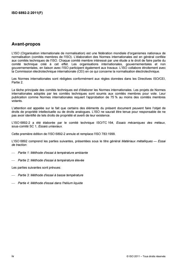 ISO 6892-2:2011 is a standard published by the International Organization for Standardization (ISO). Its full title is "Metallic materials — Tensile testing — Part 2: Method of test at elevated temperature". This standard covers: ISO 6892-2:2011 specifies a method of tensile testing of metallic materials at temperatures higher than room temperature.