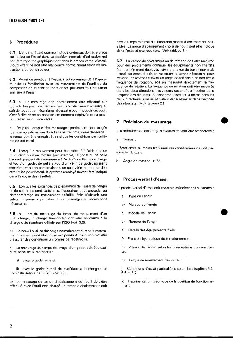 the movement time of hydraulically-operated tools and com- accordance with the appropriate International Standard for