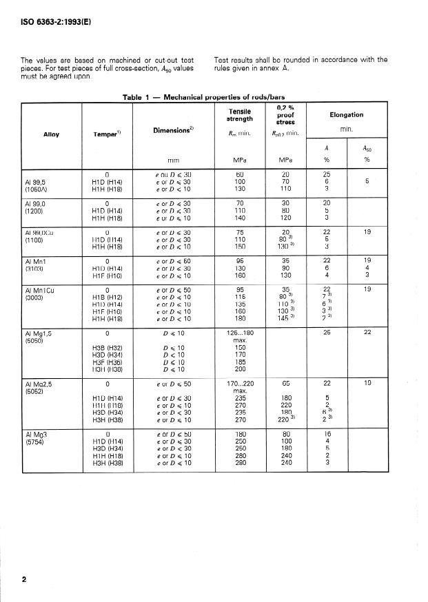 (Main)Wrought aluminium and aluminium alloy cold-drawn rods/bars and tubes — Part 2: Mechanical properties