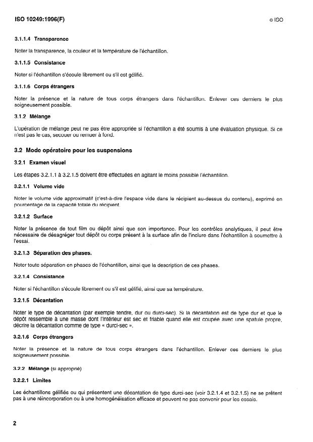 Noter toute séparation en phases de l’échantillon, ainsi que le volume et la nature de ces phases (voir 3.2.1.5).