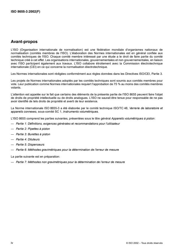 La Norme internationale ISO 8655-3 a été élaborée par le comité technique ISO/TC 48, Verrerie de laboratoire et