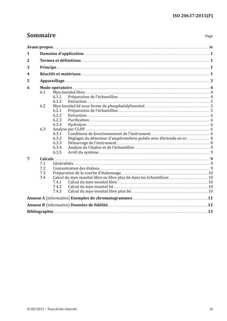 ISO 20637:2015 - Formules infantiles et produits nutritionnels pour adultes — Détermination de la teneur en myo-inositol par chromatographie liquide et ampérométrie pulsée/9/2015