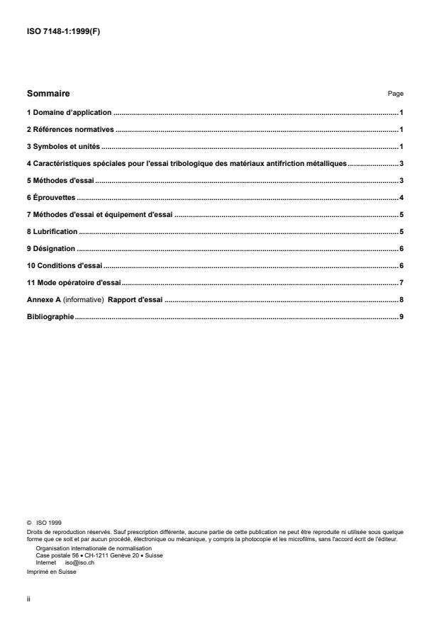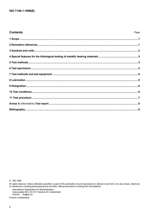 ISO 7148 consists of the following parts under the general title Plain bearings — Testing of the tribological