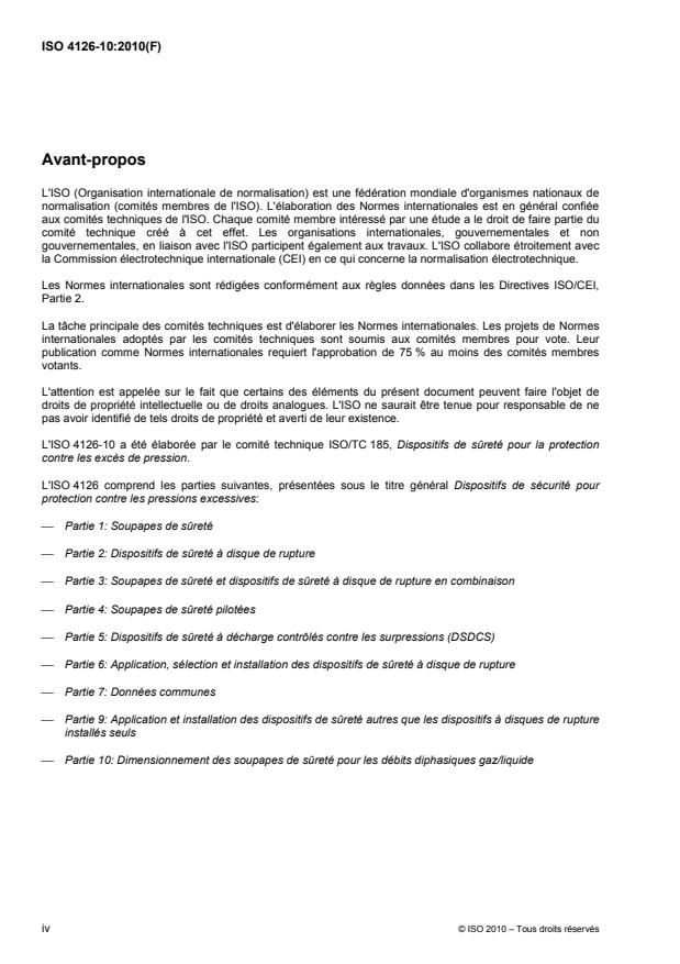 L'ISO 4126:2010 spécifie le dimensionnement des soupapes de sûreté pour l'écoulement diphasique gaz/liquide montées sur les systèmes sous pression tels que les réacteurs, les réservoirs de stockage, les colonnes, les échangeurs thermiques, les systèmes de tuyauterie, ou les réservoirs/containers de transport.