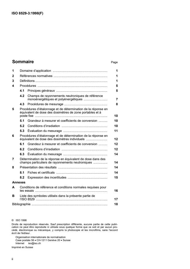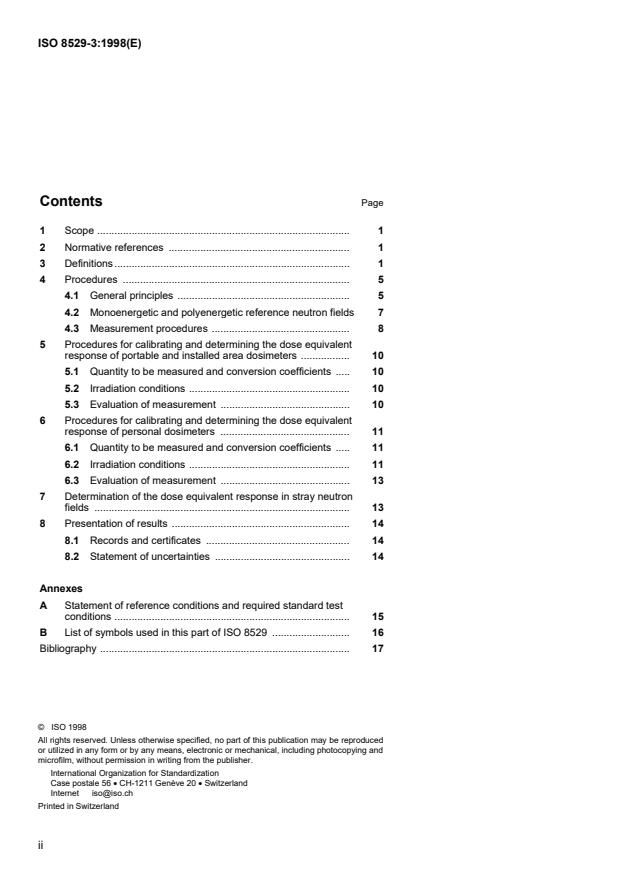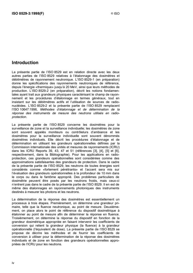 ISO 8529-3:1998 is a standard published by the International Organization for Standardization (ISO). Its full title is "Reference neutron radiations — Part 3: Calibration of area and personal dosimeters and determination of response as a function of energy and angle of incidence". This standard covers: La présente partie de l'ISO 8529 donne des lignes directrices à ceux qui étalonnent, avec des rayonnements neutroniques de référence, des dosimètres et débitmètres pour les surveillances de zone et individuelle dans le cadre de la radioprotection. Ceci inclut la détermination de la réponse en fonction de l'énergie des neutrons et de leur angle d'incidence. Les grandeurs opérationnelles, recommandées dans l'ICRU Report 43 (référence [4] dans la bibliographie) et l'ICRU Report 47 (référence [5] dans la Bibliographie), sont prises en compte. En plus de la description des procédures, la présente partie de l'ISO 8529 contient des définitions et les coefficients de conversion appropriés et donne des indications sur l'analyse des incertitudes de mesurage et l'élaboration des fiches et des certificats d'étalonnage.NOTE Les caractéristiques des rayonnements de référence, leurs méthodes de production et leurs applications sont décrites dans l'ISO 8529-1 et l'ISO 8529-2.