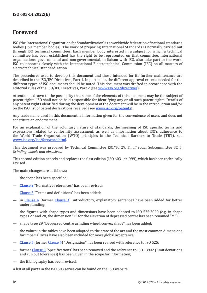 Cette deuxième édition annule et remplace la première édition (ISO 603-14:1999), qui a fait l’objet d’une