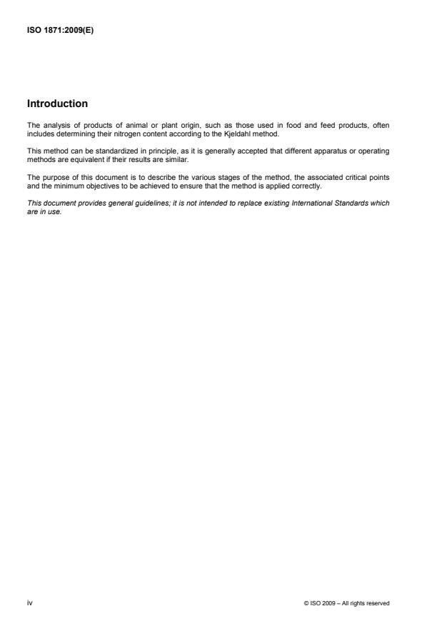 ISO 1871:2009 - Food and feed products -- General guidelines for the determination of nitrogen by the Kjeldahl method
