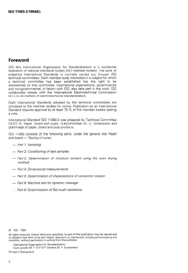 Keywords: ISO 11093-3, moisture content, oven drying method, paper cores, spool cores, testing of cores, paper and board.