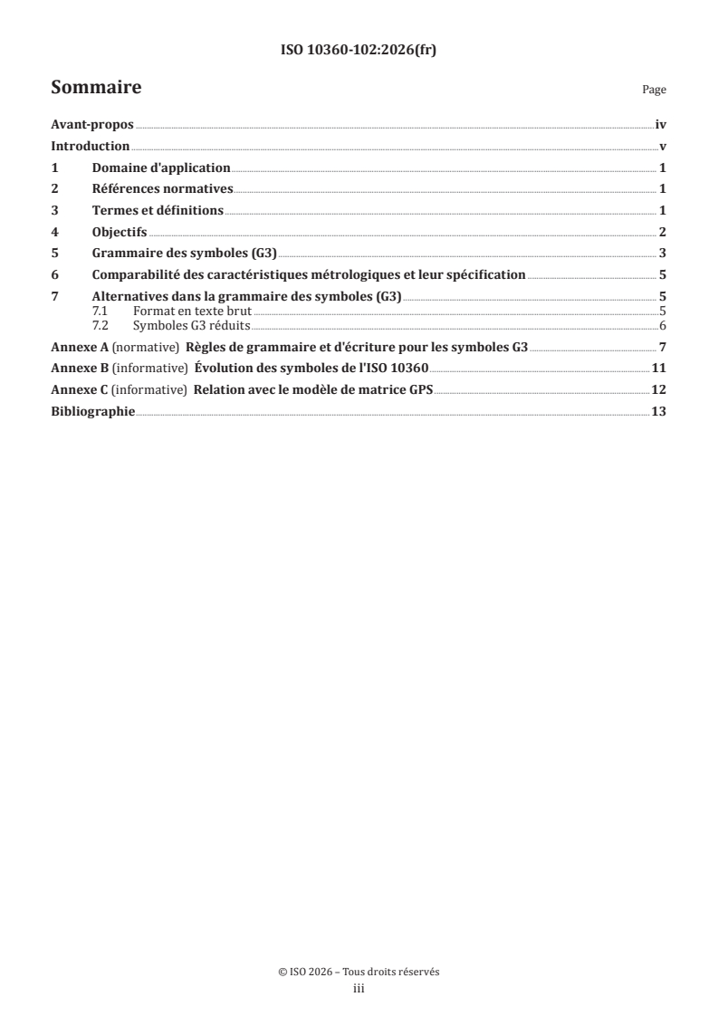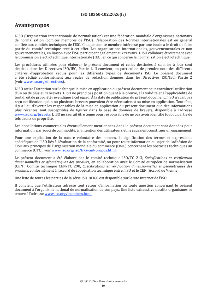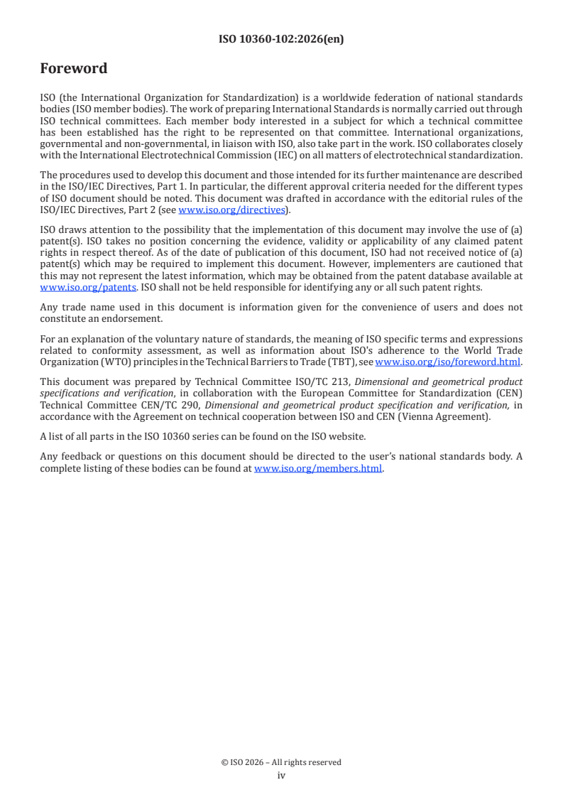 ISO 10360-102:2026 is a standard published by the International Organization for Standardization (ISO). Its full title is "Geometrical product specifications (GPS) — Acceptance and reverification tests for coordinate measuring systems (CMS) — Part 102: Grammar of symbols for metrological characteristics and their specifications". This standard covers: This document specifies the grammar of symbols used in ISO 10360 series in order to identify metrological characteristics of coordinate measuring systems (CMSs) and their specifications. This document does not provide the meaning of these symbols, neither of whole symbols nor of their components. These meanings are specified in the ISO 10360 documents introducing them.