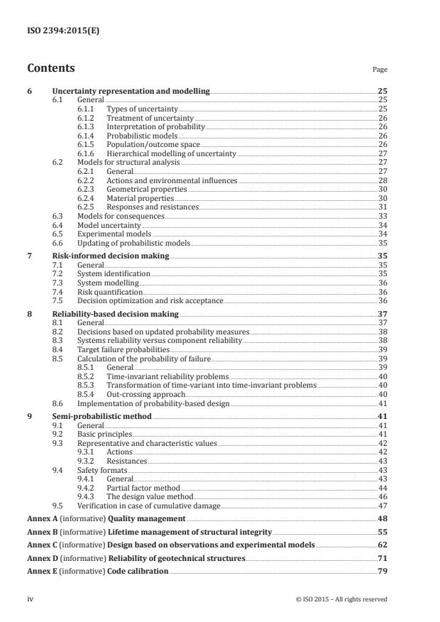 - Informative annexes - quality management, lifetime integrity management, design based on observations/experimental models, geotechnical reliability, code calibration, structural robustness and life-safety optimization.