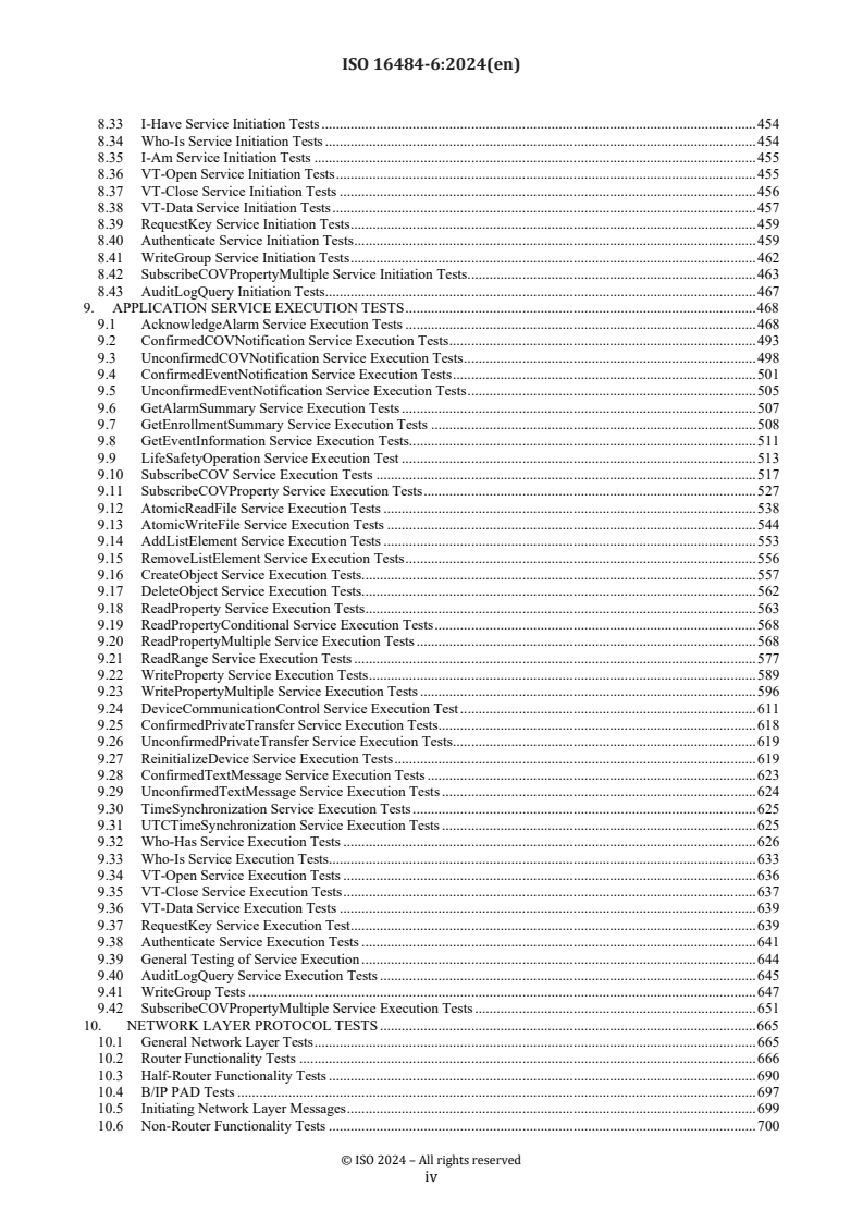 Keywords: ISO 16484-6:2024, BACnet, BACS, building automation, data communication conformance testing, PICS, EPICS, network layer, application services, conformance tests.