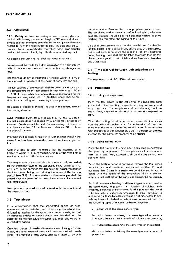 ISO 188:1982 is a standard published by the International Organization for Standardization (ISO). Its full title is "Rubber, vulcanized — Accelerated ageing or heat-resistance tests". This standard covers: Rubber, vulcanized — Accelerated ageing or heat-resistance tests