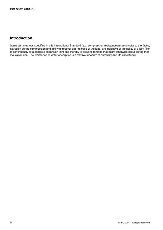 ISO 3867:2001 - Composition cork -- Expansion joint fillers -- Test methods