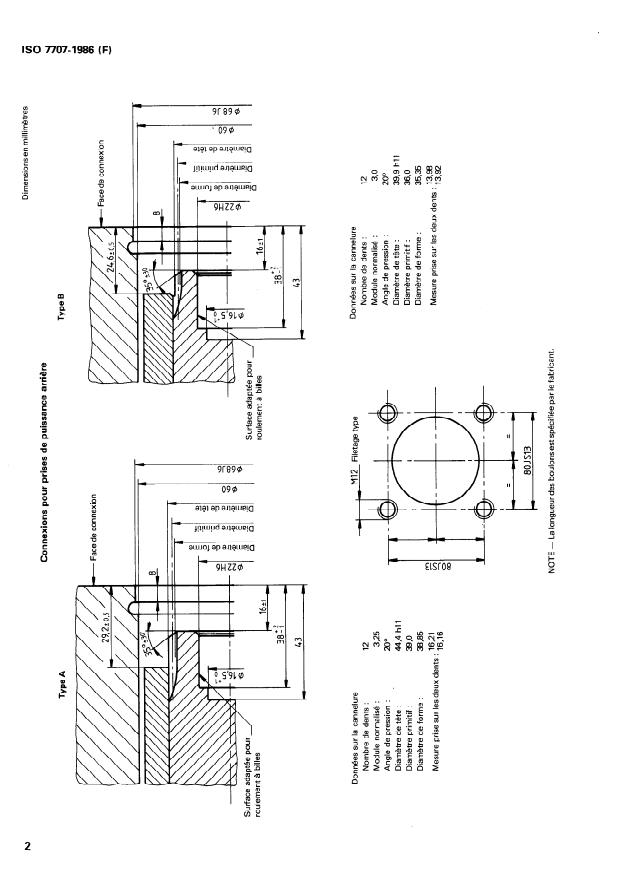 - Designation: The document gives an example designation format (e.g. “Connexion pour prise de puissance arrière ISO 7707-A”) for identifying connection types in technical documentation.