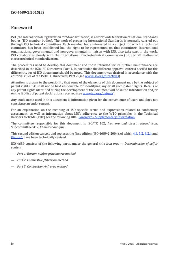 ISO 4689 consists of the following parts, under the general title Iron ores — Determination of sulfur
