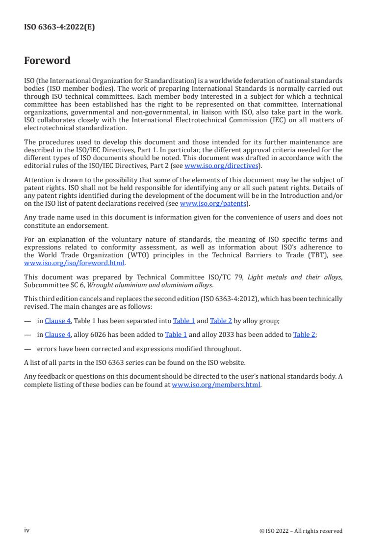 — in Clause 4, alloy 6026 has been added to Table 1 and alloy 2033 has been added to Table 2;