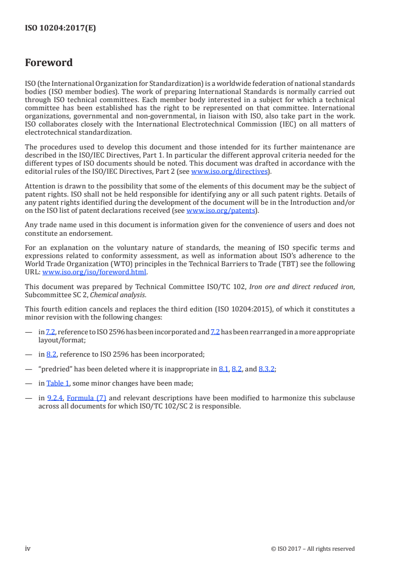 ISO 10204:2017 is a standard published by the International Organization for Standardization (ISO). Its full title is "Iron ores - Determination of magnesium - Flame atomic absorption spectrometric method". This standard covers: ISO 10204:2017 specifies a flame atomic absorption spectrometric method for the determination of the mass fraction of magnesium in iron ores. This method is applicable to mass fractions of magnesium between 0,010 % and 2,00 % in natural iron ores, iron ore concentrates, and agglomerates, including sinter products.