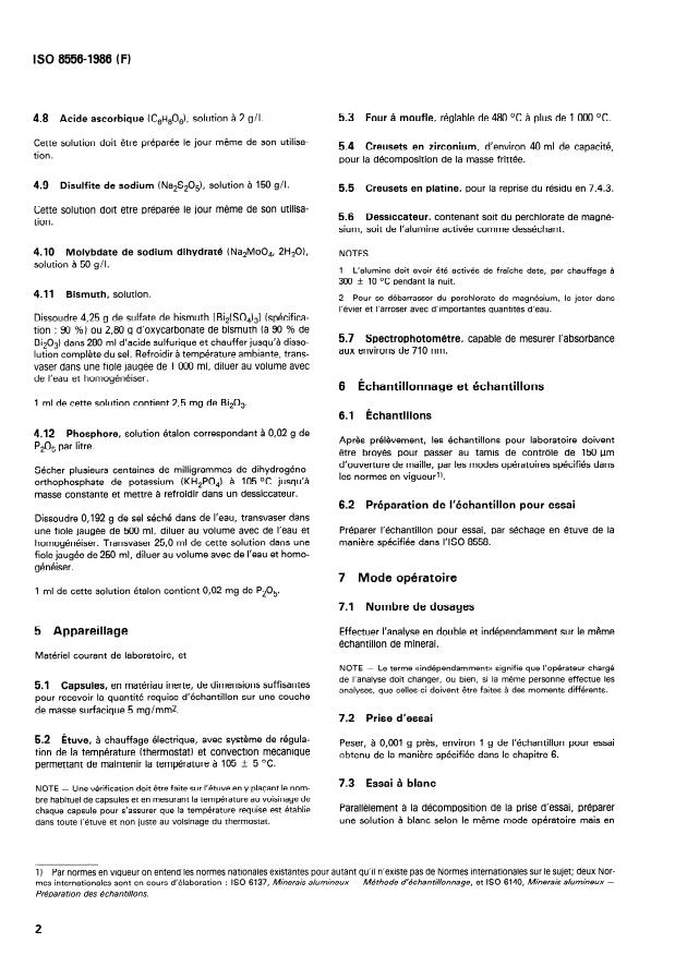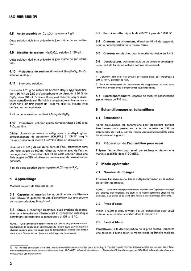 ISO 8556:1986 - Minerais alumineux -- Dosage du phosphore -- Méthode spectrophotométrique au bleu de molybdene