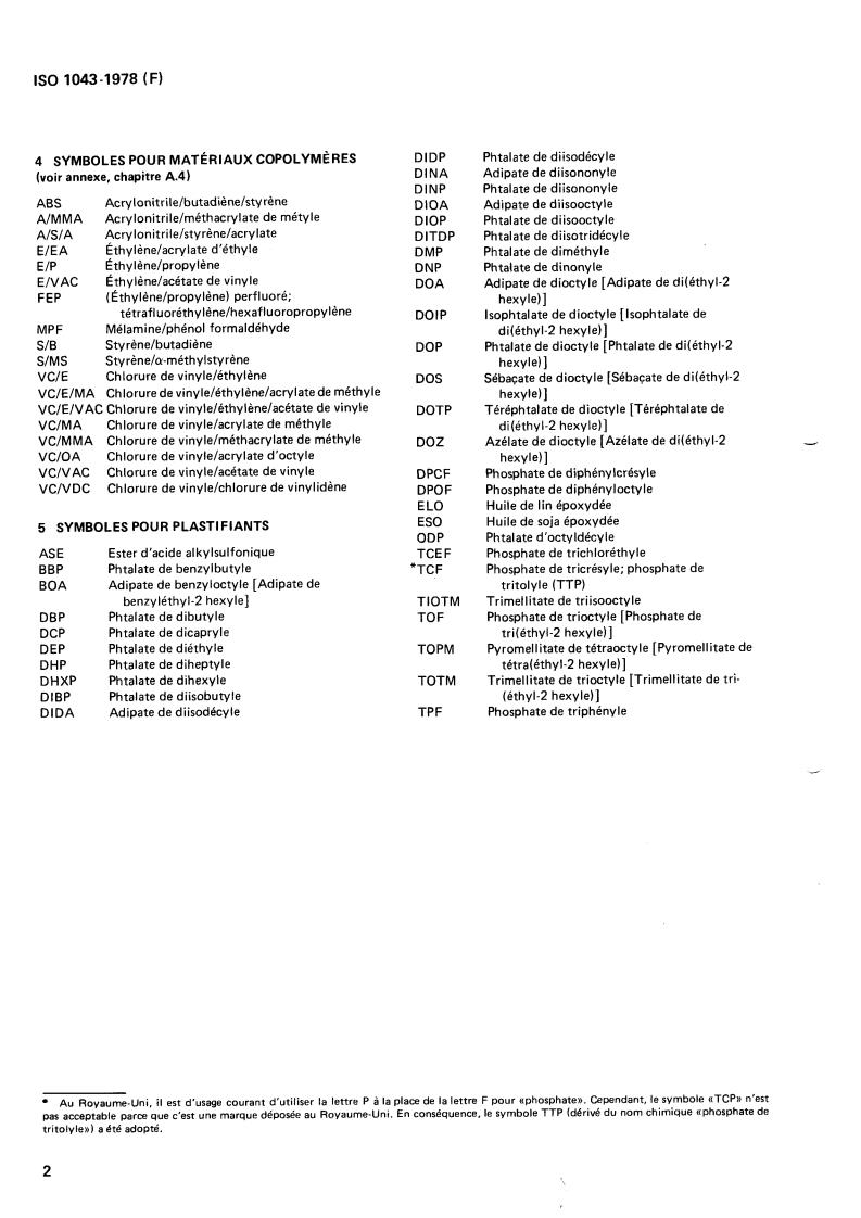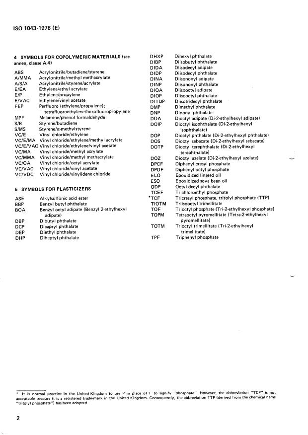 Descriptors : plastics, polymers, copolymers, plasticizers, symbols, abbreviations, designation.