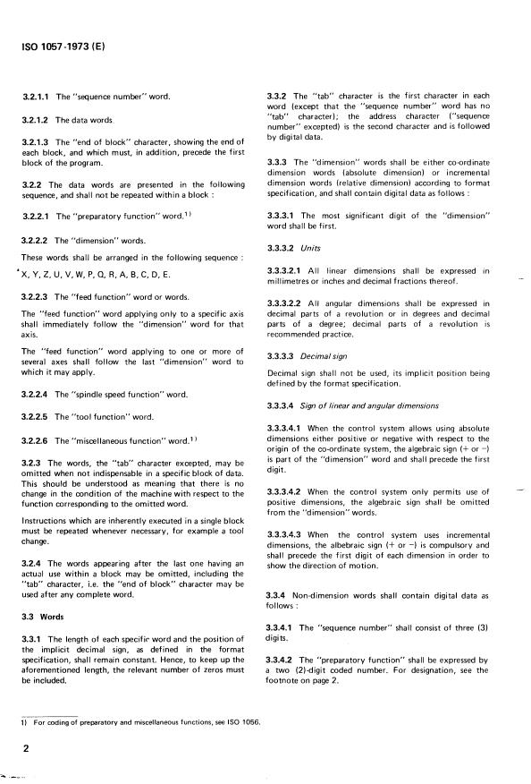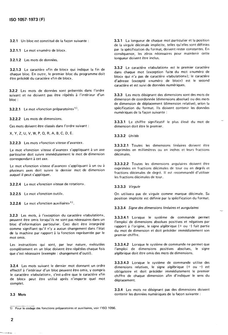 1)Pour le codage des fonctions préparatoires et auxiliaires, voir 1'1S0 1056.