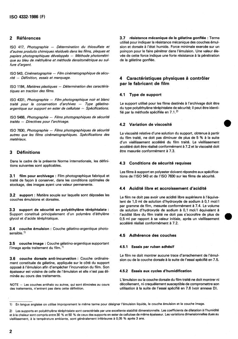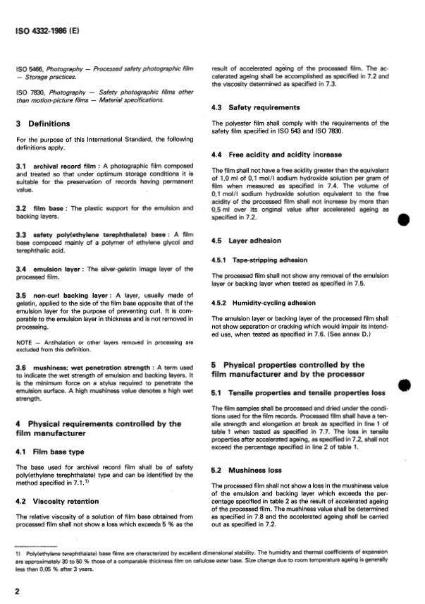 ISO 4332:1986 - Photography — Processed photographic black-and-white film for archival records — Silver-gelatin type on poly(ethylene terephthalate) base — Specifications Released:10/2/1986