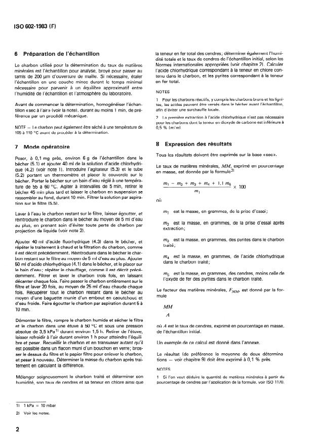 ISO 602:1983 - Charbon -- Détermination du taux de matieres minérales