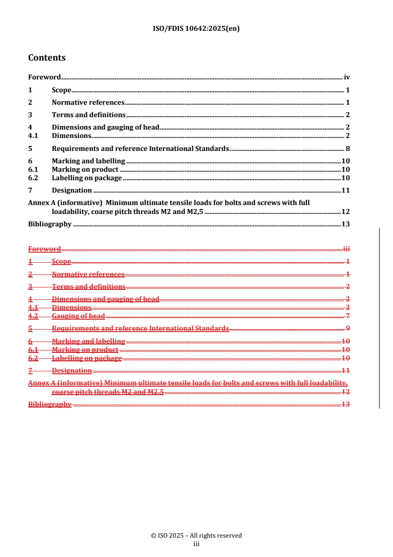 REDLINE ISO/FDIS 10642 - Fasteners — Hexagon socket countersunk head screws with reduced loadability Released:11/28/2025
