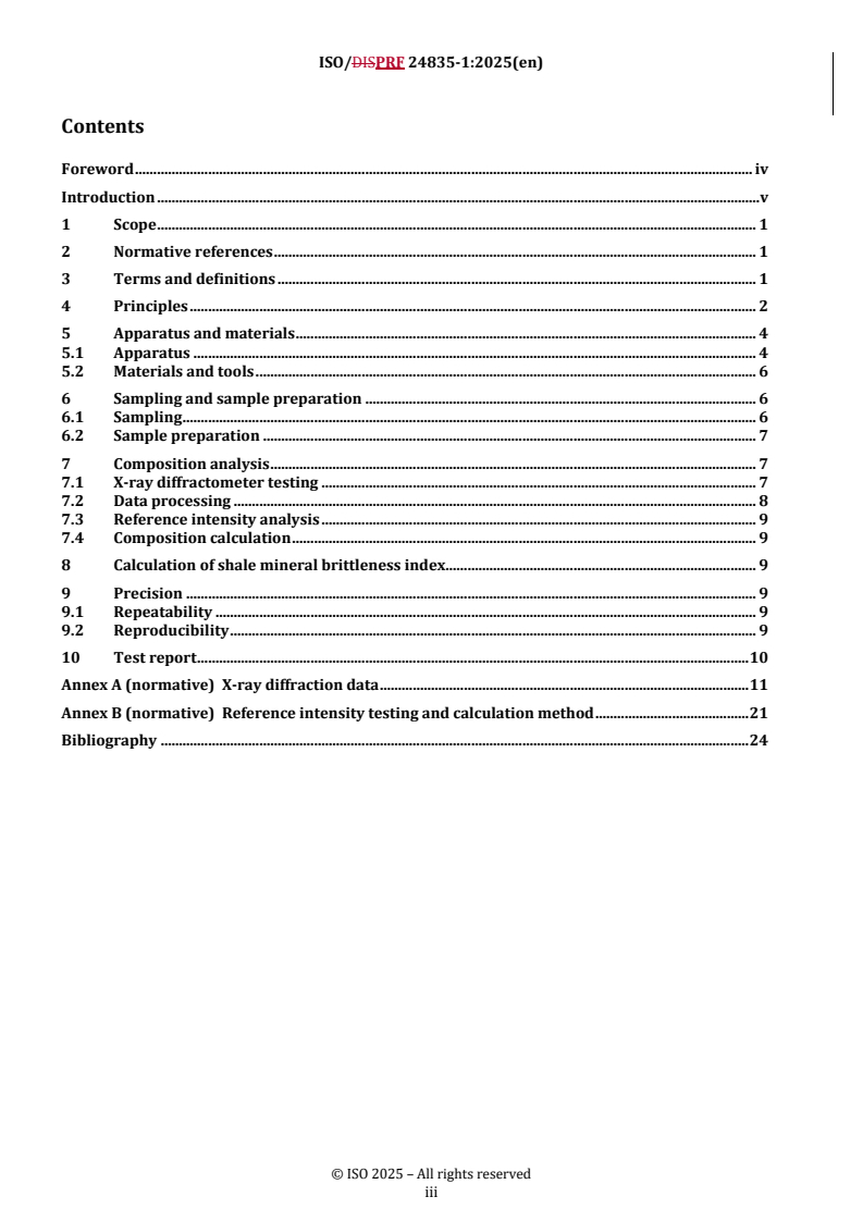 REDLINE ISO/PRF 24835-1 - Natural gas upstream area — Determination and calculation of shale brittleness index — Part 1: Determination of shale mineral characteristics based on X-ray diffraction method Released:9/30/2025