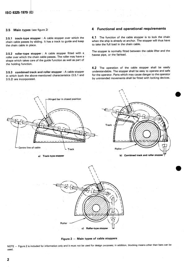ISO 6325:1979 is a standard published by the International Organization for Standardization (ISO). Its full title is "Shipbuilding — Cable stoppers". This standard covers: Shipbuilding — Cable stoppers