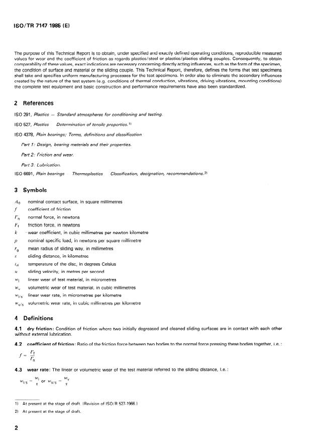 the testing plastics in accordance with this Technical Report, the sliding couple shall consist of two test specimens, i.e. a pin
